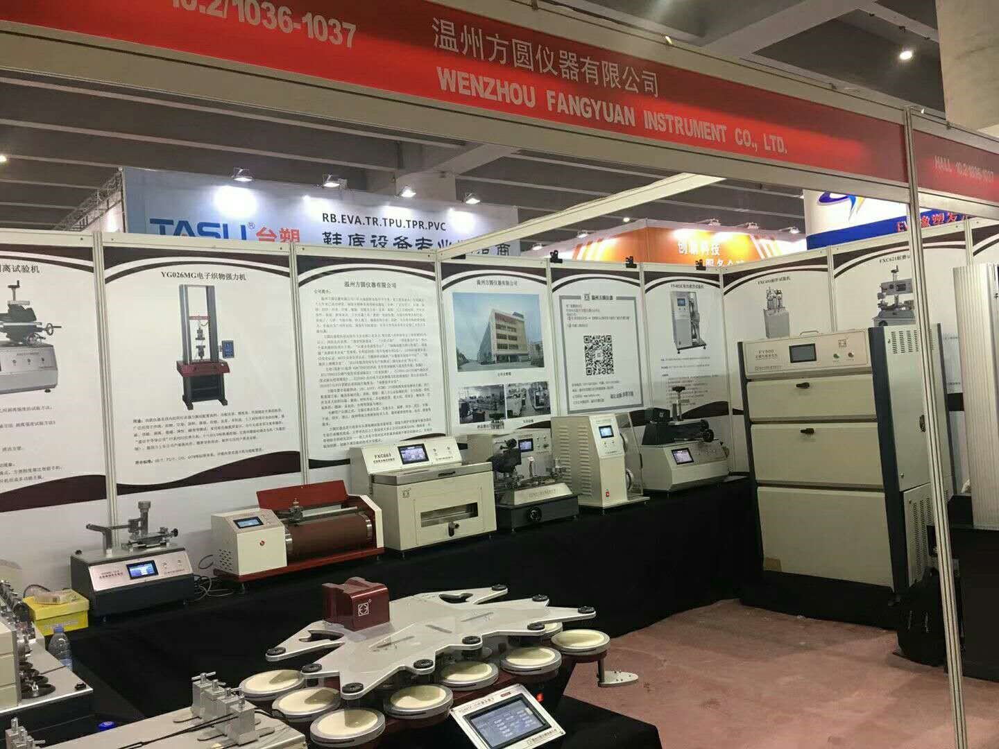 溫州方圓儀器有限公司應(yīng)展覽會(huì)主辦方邀請(qǐng),參加此次展會(huì),并實(shí)物展出了:FY600日曬氣候老化儀、YG028萬能材料試驗(yàn)機(jī)、FXC651耐折試驗(yàn)機(jī)、YG401FII織物平磨儀、XGMCIIA皮革摩擦色牢度儀、FXC621耐磨試驗(yàn)機(jī)、FXC171剝離試驗(yàn)機(jī)、FXC623鞋用纖維曲撓儀、FXC627鞋帶與鞋帶耐磨試驗(yàn)機(jī)等16種鞋類、皮革檢測(cè)儀器。