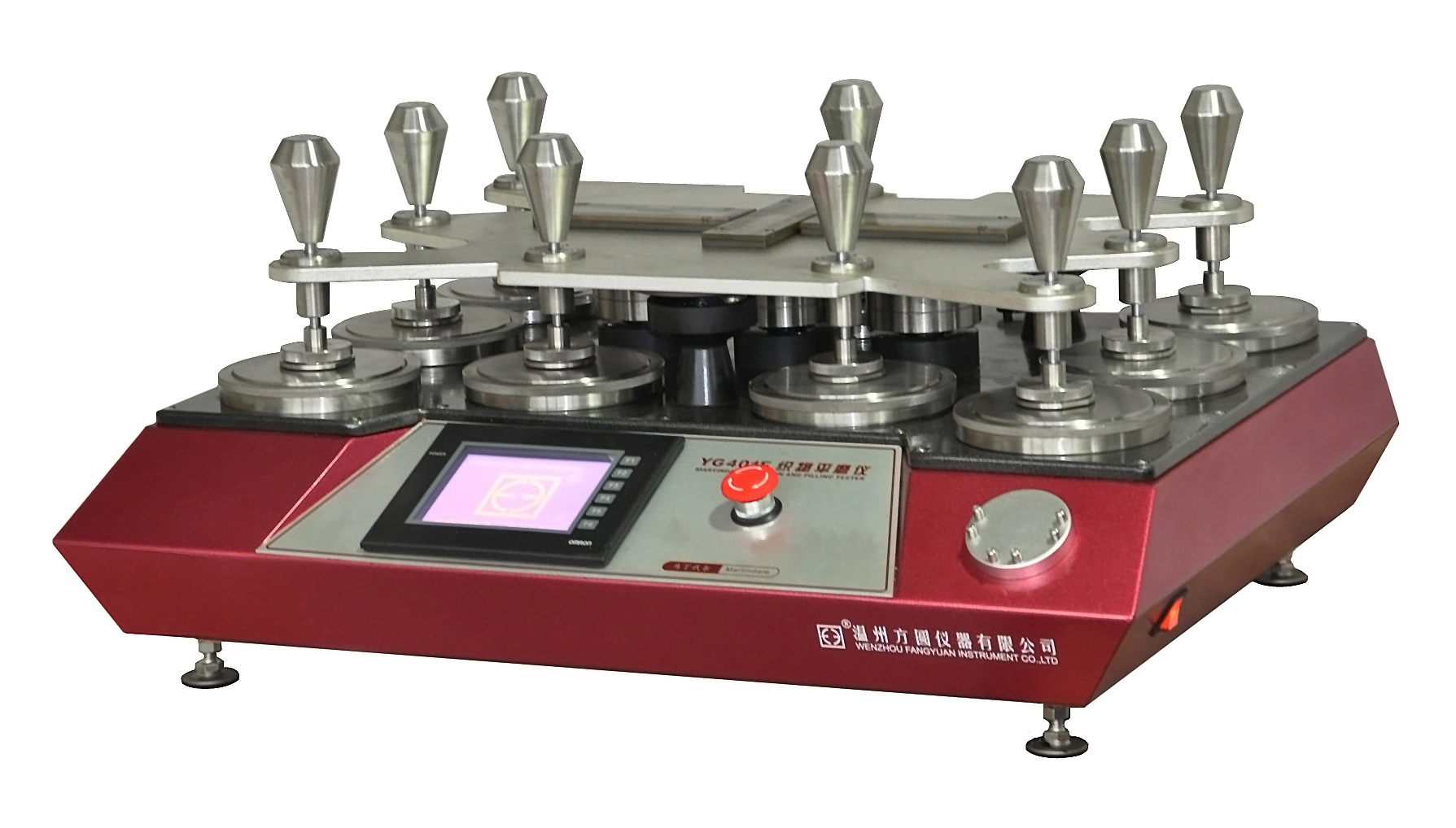 YG401E織物平磨儀(九工位) GB/T4802.2,GB/T13775,GB/T21196.1,GB/T21196.2,GB/T21196.3,GB/T21196.4;FZ/T20020;ISO12945.2、12947、5470;BS 3424、5690;ASTM D 4966、4970、IWS TM112等標準。